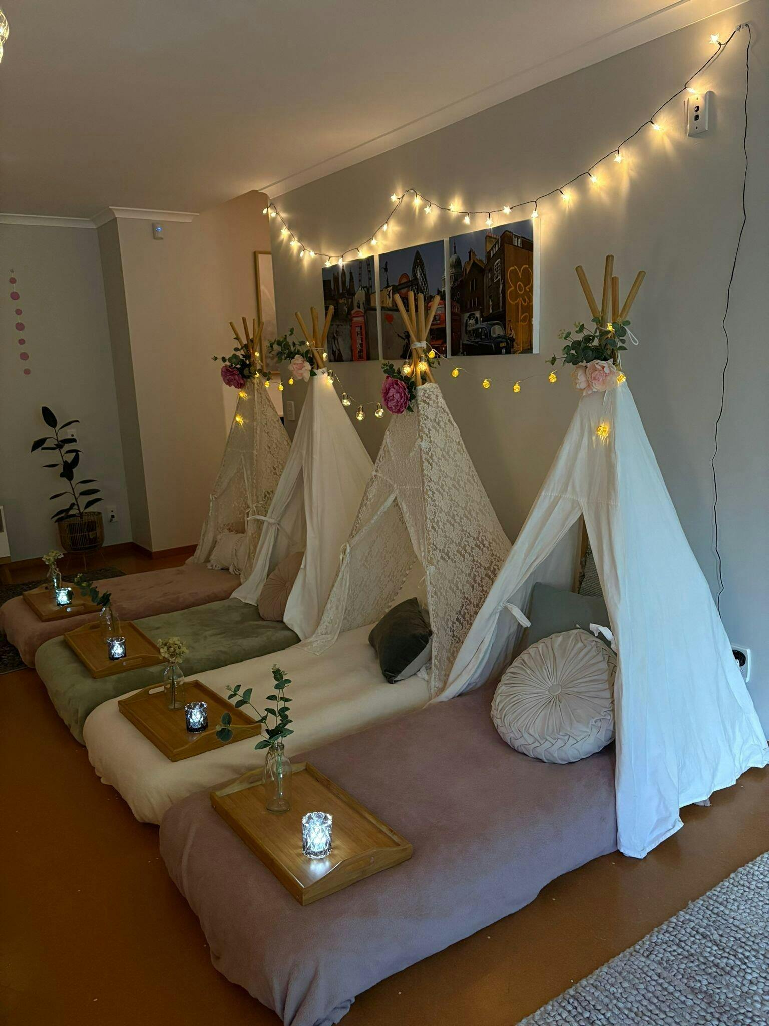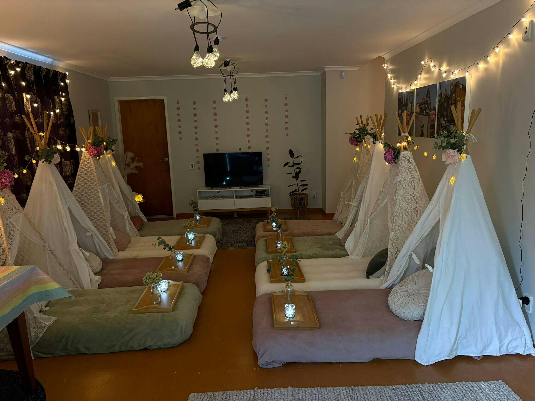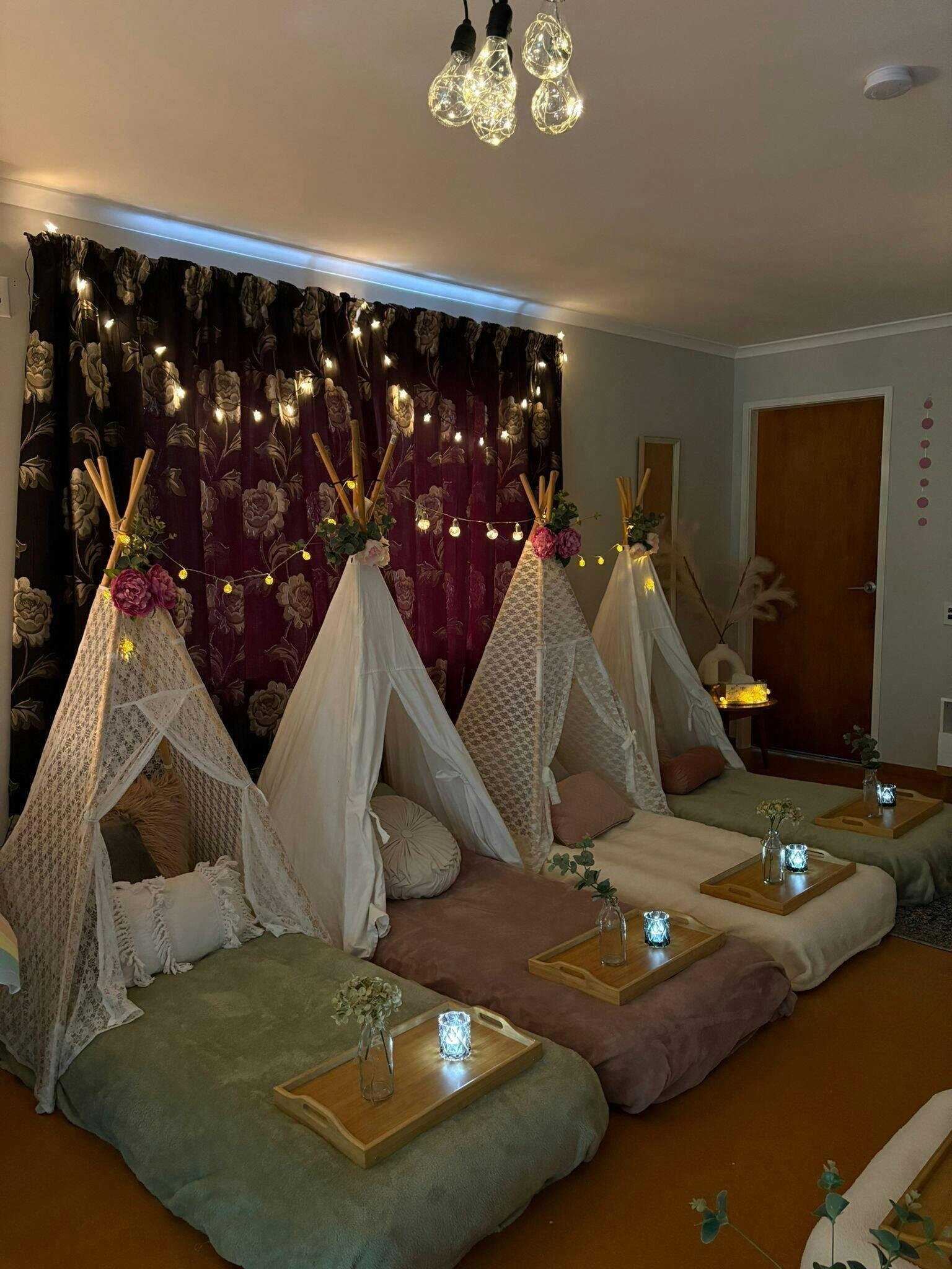 Delivery fees apply please see our full mileage fees here. Checkout our list of Teepee Extras to add to your party. Or contact us today to see what teepee slumber party magic we can create together!